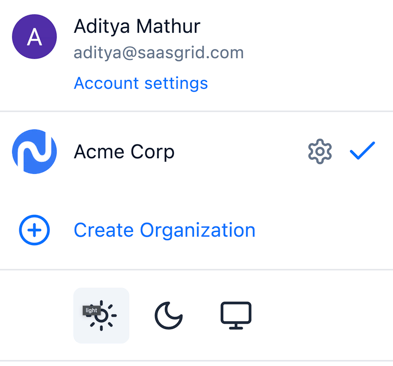 Click on the gear tab for your organization to open the organizational settings menu.